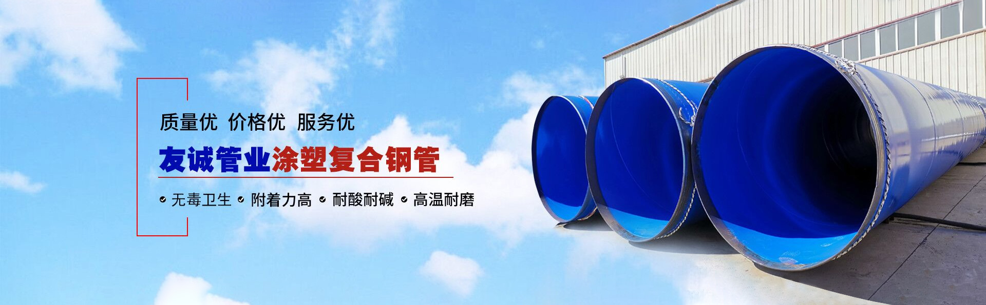 滄州友誠(chéng)管業(yè)有限公司是一家專業(yè)從事生產(chǎn)防腐涂塑管道及管件于一體的大型企業(yè)。公司注冊(cè)資金8600萬(wàn)元,位于中國(guó)管道生產(chǎn)基地—河北鹽山縣,近靠京滬高速、榮烏高速、黃石高速30公里,高鐵滄州西站40公里,天津國(guó)際機(jī)場(chǎng)、濟(jì)南遙墻機(jī)場(chǎng)150公里,為客戶來訪及業(yè)務(wù)發(fā)展提供了便利的交通條件。        鋼管系列:螺旋鋼管、無縫鋼管、ERW直縫焊管、JCOE埋弧焊直縫鋼管、熱鍍鋅鋼管。        涂塑系列:內(nèi)外涂塑鋼管、涂塑復(fù)合鋼…… 了解更多